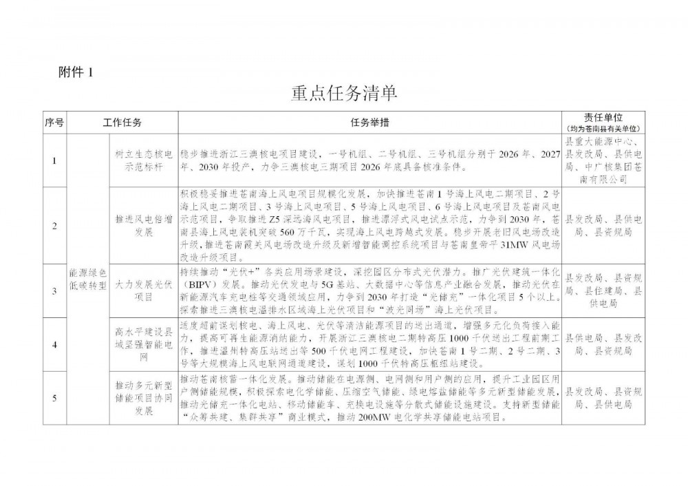 打造以南关岛、北关岛为主体,苍南绿能小镇及烟墩山采矿区为拓展,带动园区联动发展的零碳综合能源岛。推动核电、风电、光伏、波浪能、新型储能等相结合的零碳能源架构,积极发展绿色氢基产业和能源关联产业,推进能源、产业双网协同发展,形成新型绿能产业集群。