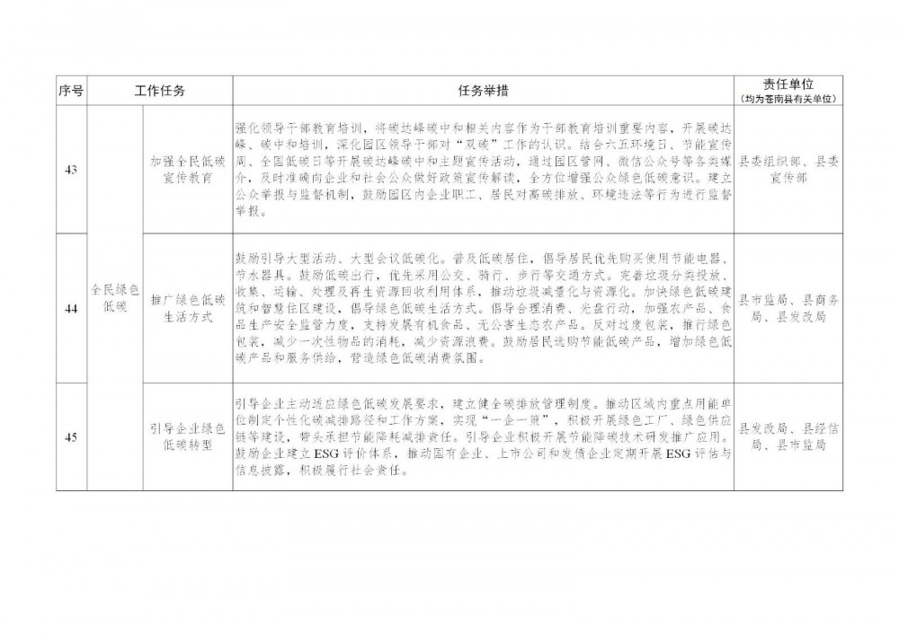 加大“低碳”理念宣传教育力度,传播“低碳”和生态环境保护文化,及时总结、宣传报道苍南县重大清洁能源项目建设模式、再生纺织品产业发展、“双碳”制度创新等典型经验做法,构建全方位、全视角、立体式的宣传引导格局。