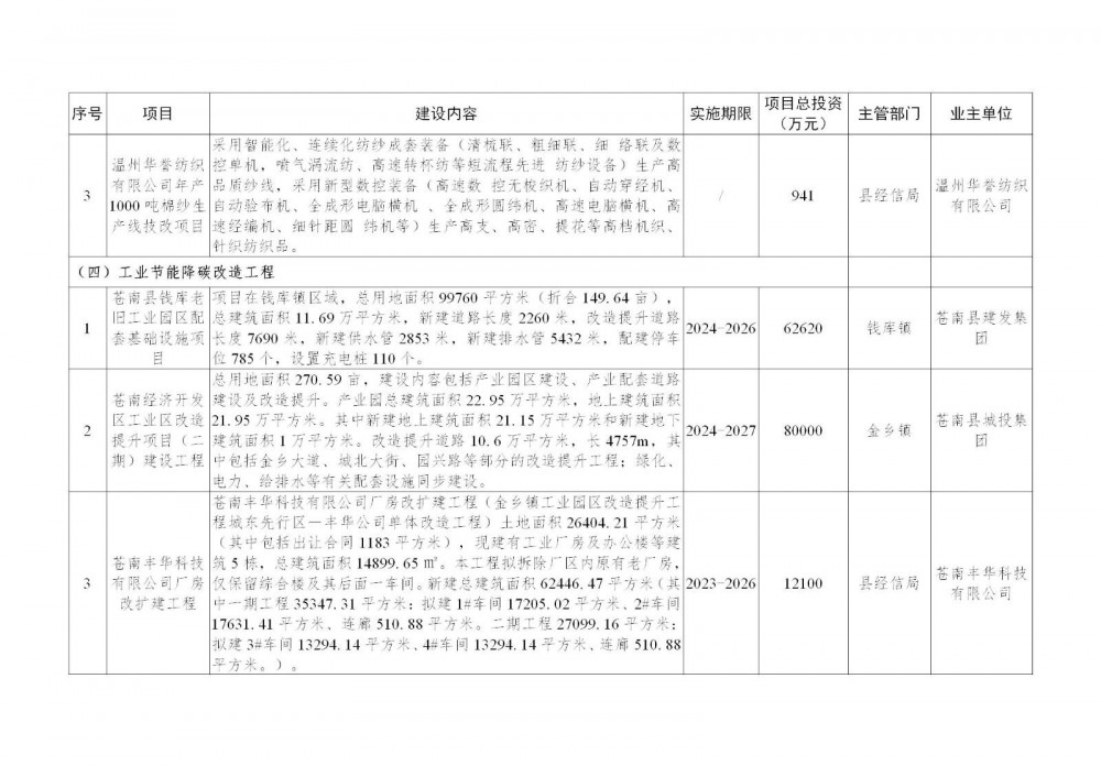 进行产业园区建设改造,推进低效产业用地再开发、企业用能设备更新和节能技术改造,并进行产业配套道路、绿化、电力、给排水和垃圾处理等有关配套设施同步建设。实施数字化赋能纺织产业、智能化改造升级等项目。