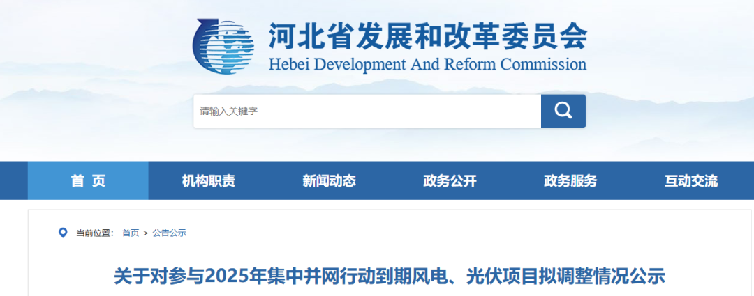 能源圈获悉,1月12日,河北省发展和改革委发布《关于对参与2025年集中并网行动到期风电、光伏项目拟调整情况公示》。