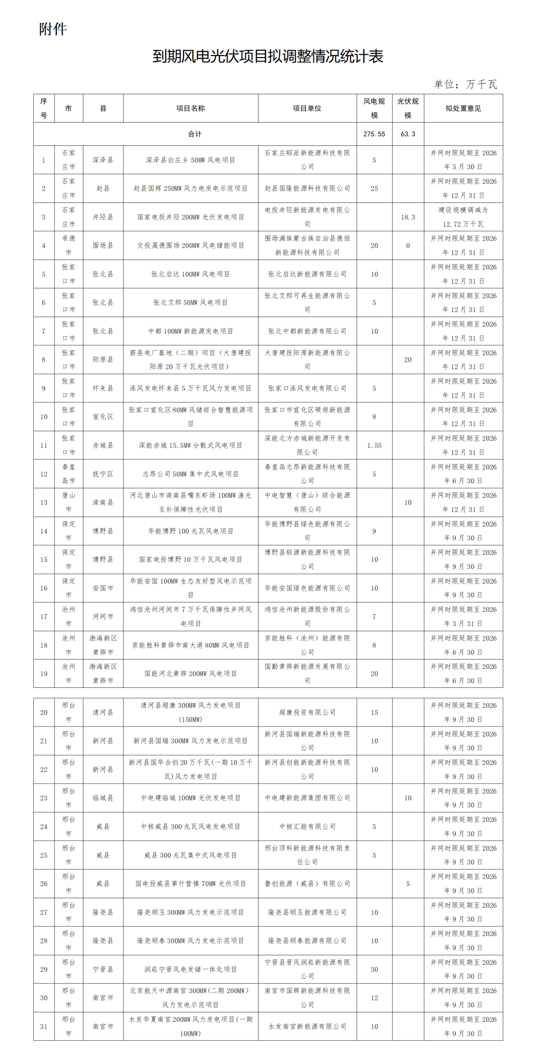 附件:到期风电光伏项目拟调整情况统计表