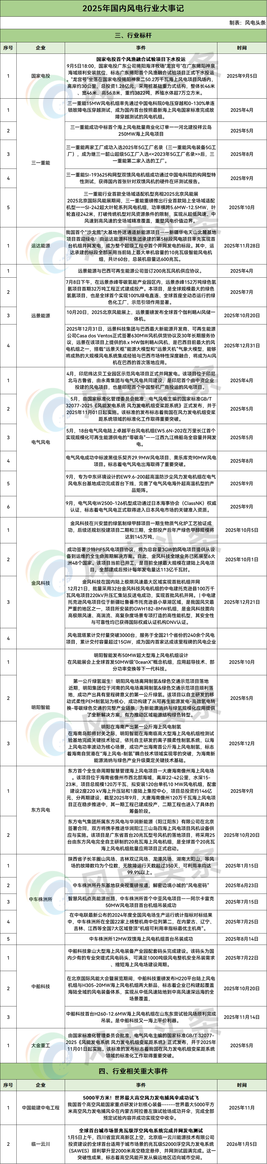 除了行业层面的全方位突破外,我国各主要风电企业在 2025 年也交出了亮眼答卷,实现多项重磅产品发布、关键项目突破与核心市场拓展。