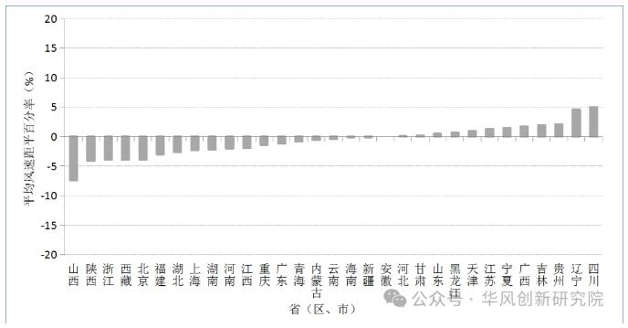按地区排序,重庆、福建平均风速小于4.5m/s,山东、云南、上海、黑龙江、内蒙古、辽宁、吉林、青海、西藏平均风速大于6.0m/s,其他地区平均风速在4.5m/s与6.0m/s之间。
