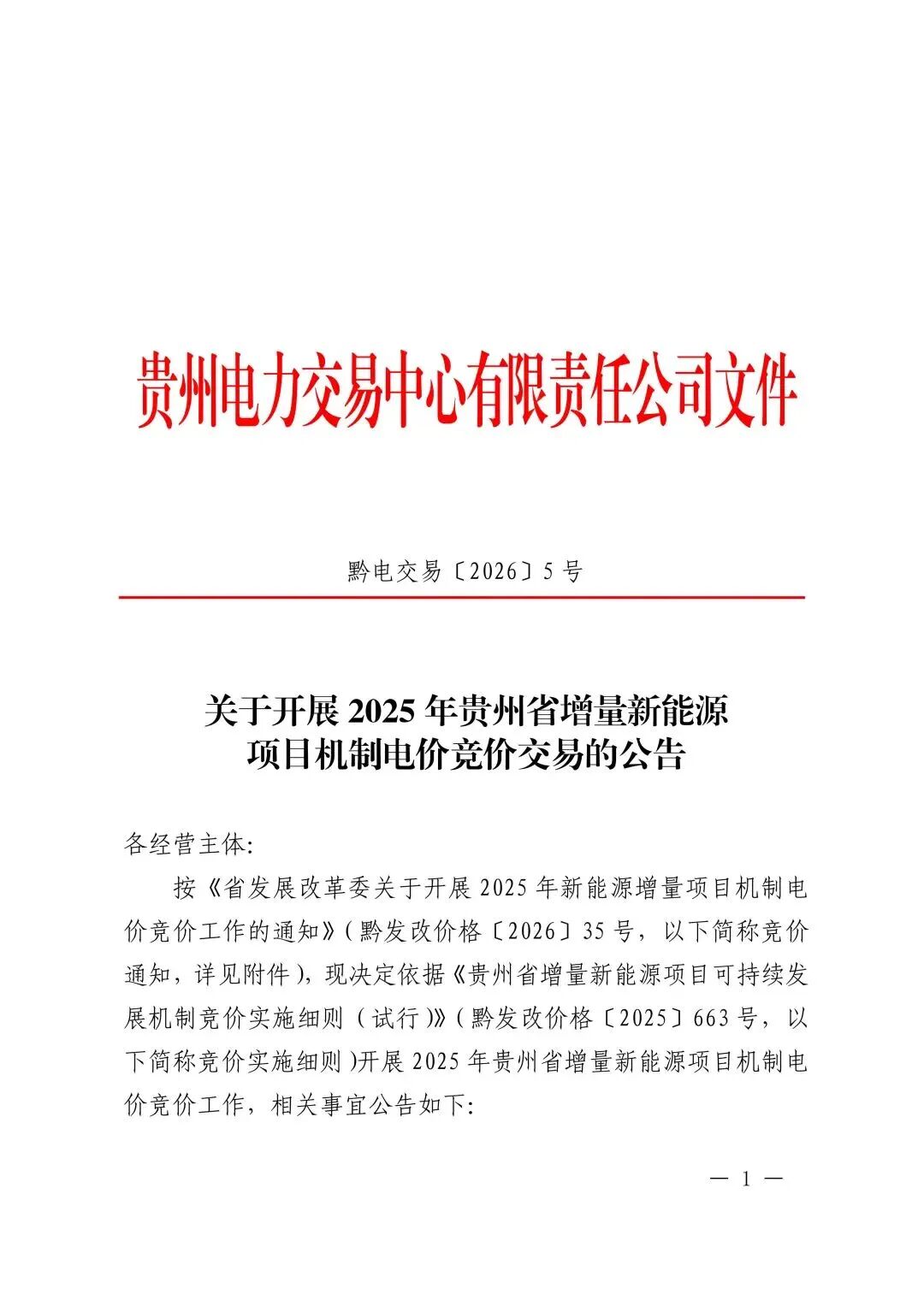 能源圈获悉,1月21日,贵州电力交易中心发布《关于开展2025年新能源增量项目机制电价竞价工作的通知》。