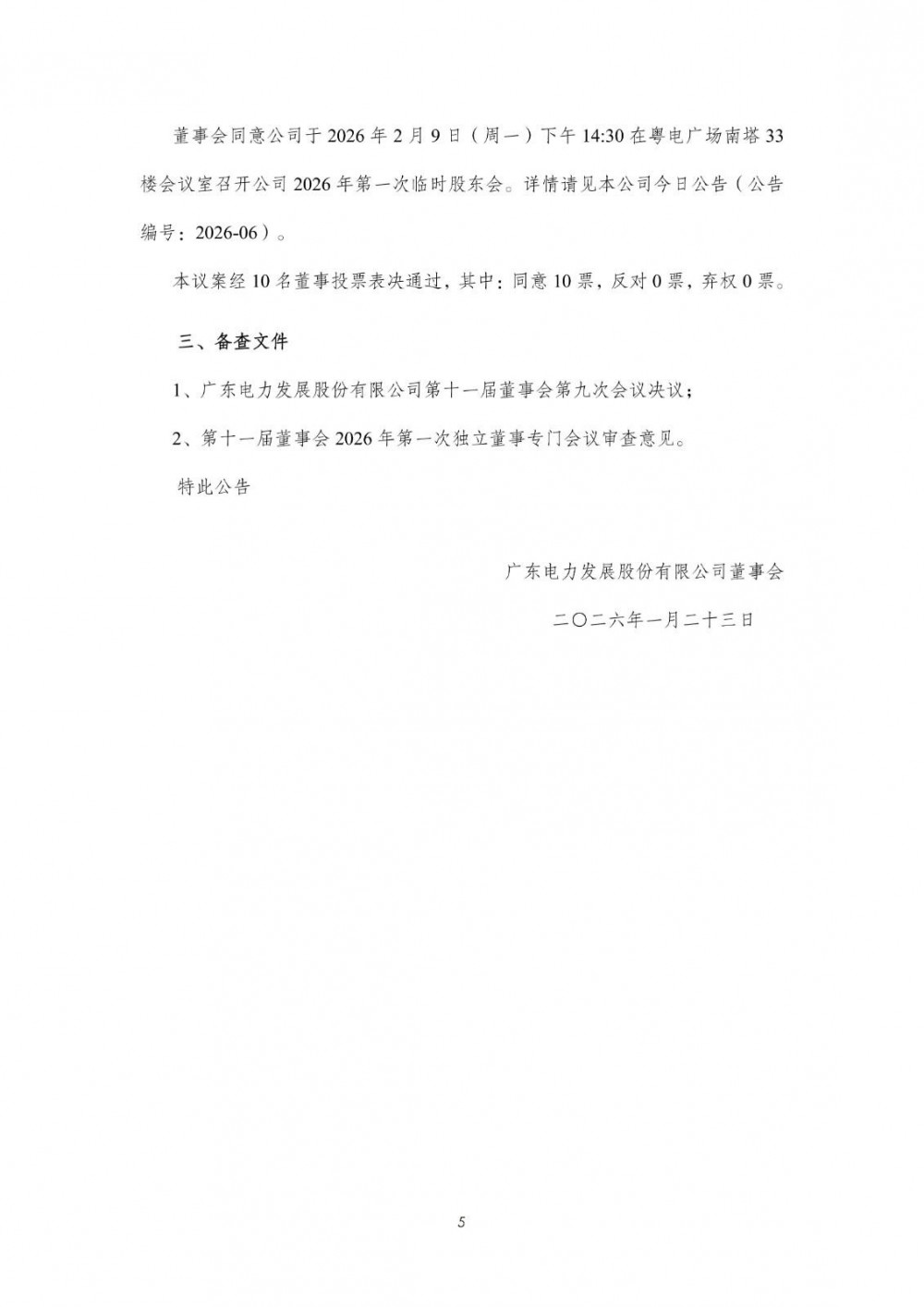 1月23日,广东电力发展股份有限公司(简称:粤电力)发布第十一届董事会第九次会议决议公告。