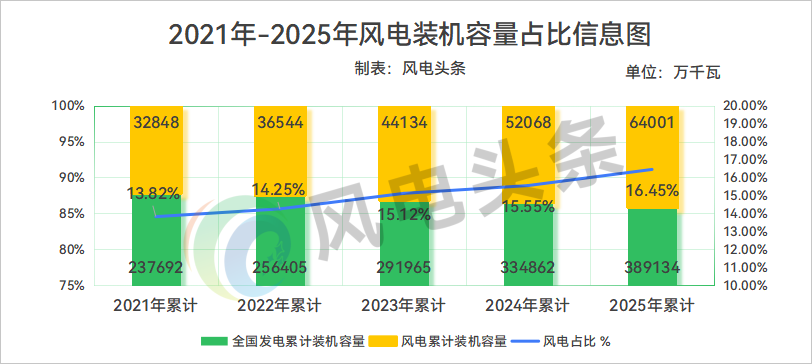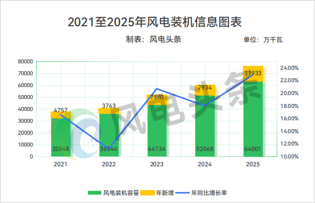放眼更长周期,我国风电累计装机容量已从2020年底的2.82亿千瓦,稳步攀升至2025年的6.40亿千瓦,五年间年均增长率均保持两位数,展现出行业在政策与市场变化中的强劲韧性。