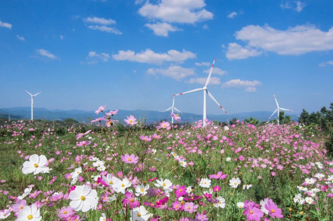 作为西双版纳州唯一风电场,项目创新采用“花园式”运营理念,选址兼顾风能资源、地形地貌与土地利用,实现工业设施与自然环境和谐相融,为热带地区风电开发提供了兼顾环保与效益的实践样本,被评为西双版纳州“环境友好型企业”。经过长期生态运营,其已成为每年花季时节当地知名打卡点。