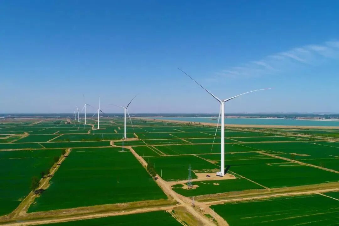 ▲华能德州丁庄100MW风电项目——目前建设的低风速陆上平原风电场功率级别最高的风力发电机组,荣获“中国电力优质工程奖”