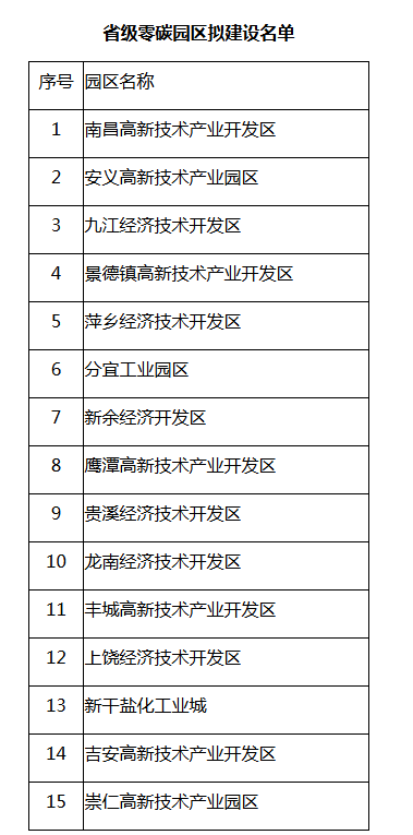 2月4日,江西省发展和改革委员会发布关于省级零碳园区拟建设名单的公示。
