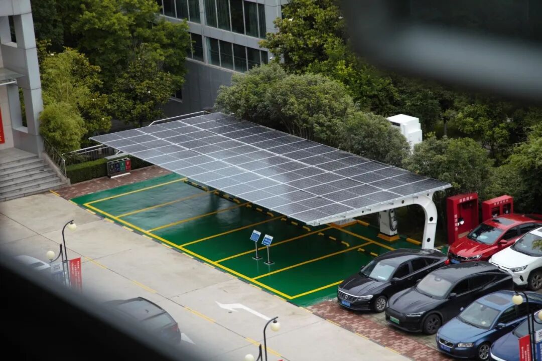 中电工程陕西院低碳园区利用陕西院科研楼、办公楼屋面建设一座屋面光伏电站,主要包括屋面光伏区、储能装置、光伏车棚和充电桩。院内同步建设光伏车棚(配套3座充电桩、6支充电枪)及储能装置,本次共建设791块太阳能板,总面积2348平方米,采用“自发自用余电上网”运营模式。光储充一体化项目运维管理平台,有12个子系统,分别为:全局驾驶舱、电池储能管理、光伏发电管理、符合用电管理、电能质量管理、充电桩管理、运维管理、视频监控、故障告警记录、报表管理、分析工具、系统管理。