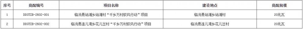 2.竞配规模:本次竞争性配置总规模40兆瓦,共2个风电项目(每个项目20兆瓦),标段项目竞配信息见下表: