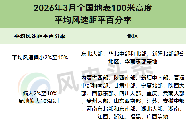 预计:2026年3月,全国陆地100米高度平均风速区域平均值约为6.2m/s,但空间分布不均。