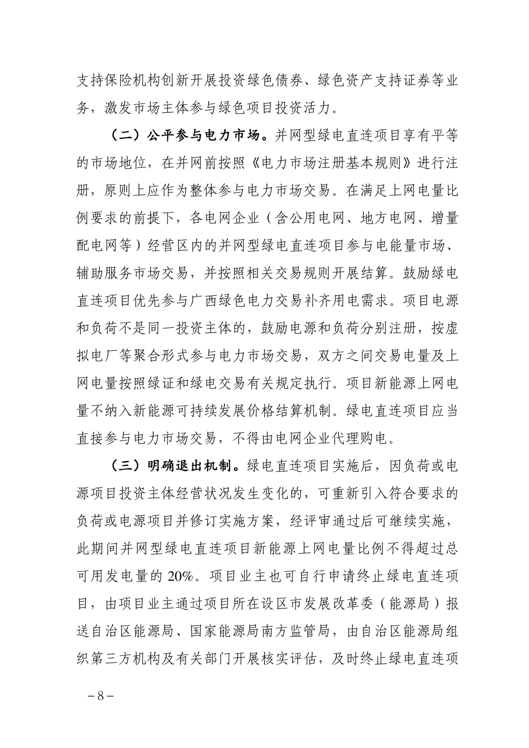 为进一步发挥广西绿色能源优势,推动绿色电力资源就地高效利用,更好满足企业绿色用能需求,现将《广西推动绿电直连发展实施方案》印发你们,请认真组织实施。