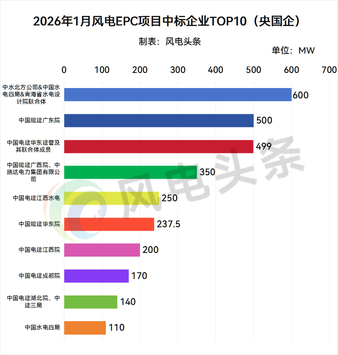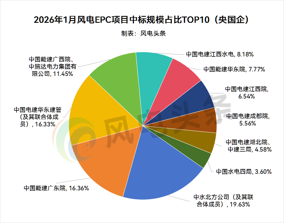 2026年1月央国企风电EPC(含PC)项目中标市场呈现如下趋势和特点: