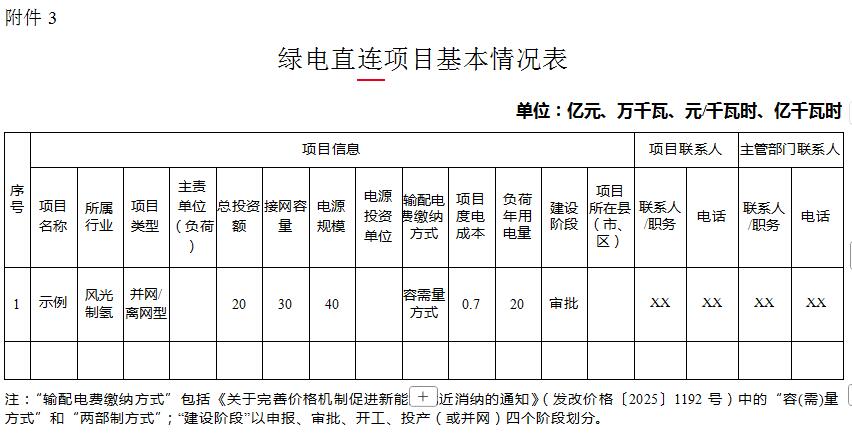 3. 绿电直连项目基本情况表