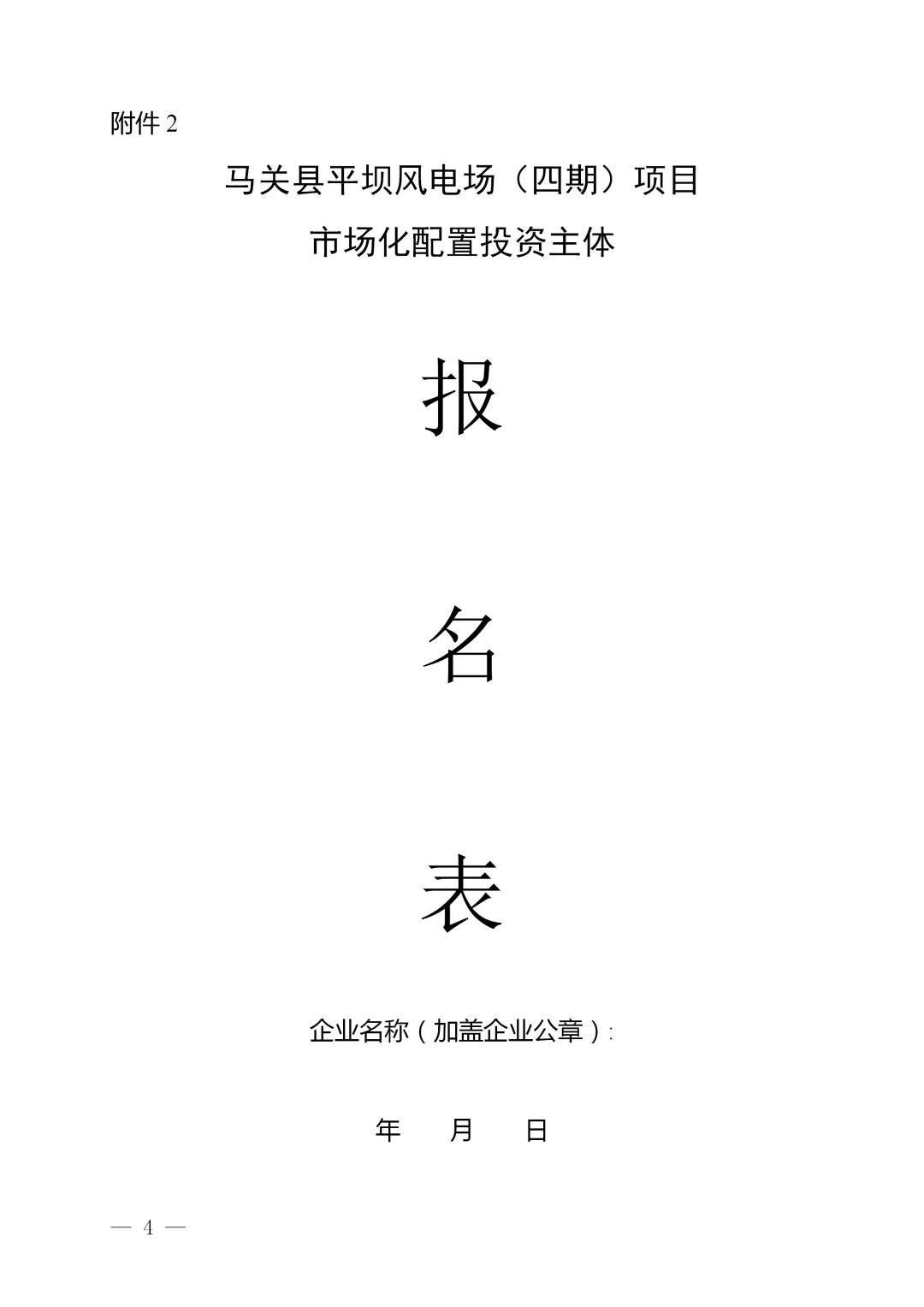 2.马关县平坝风电场(四期)项目市场化配置投资主体报名表