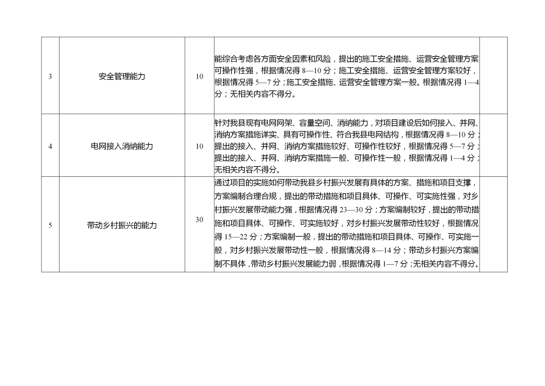 (二)科学合理配置。综合考量企业实力、技术方案、建设运营能力、上网电价等多个因素,运用科学合理的评分机制,实现项目资源的最优配置。