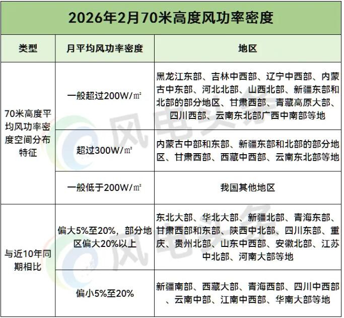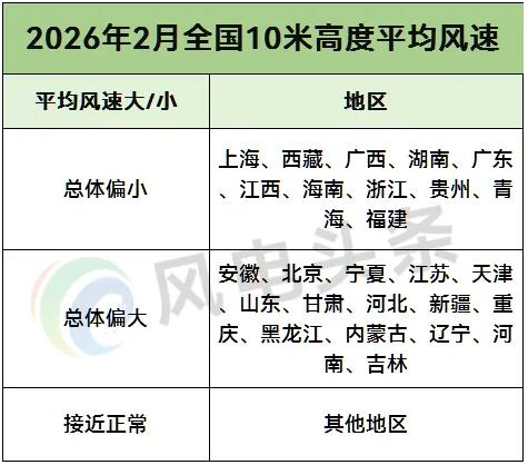 内容指出,2026年2月,全国风能资源为偏大年景。