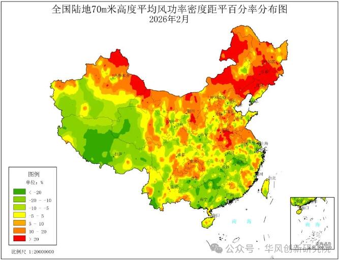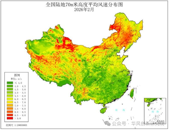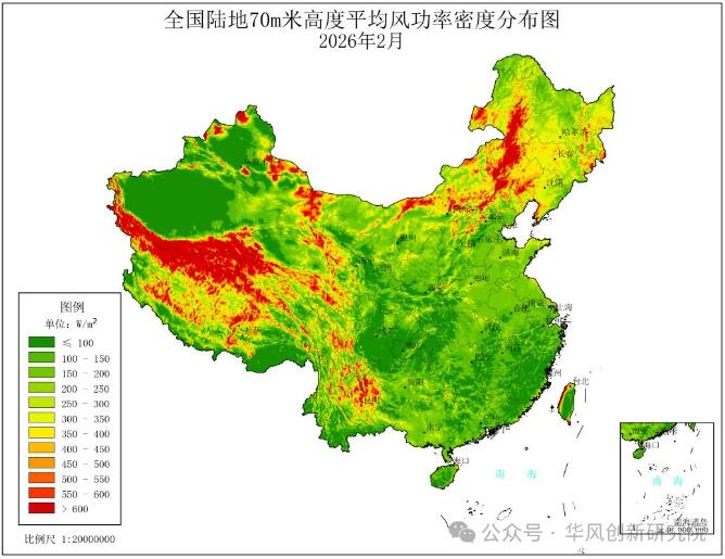能源圈获悉,3月12日,华风创新研究院发布《全国风能资源评价报告(2026年2月)》。