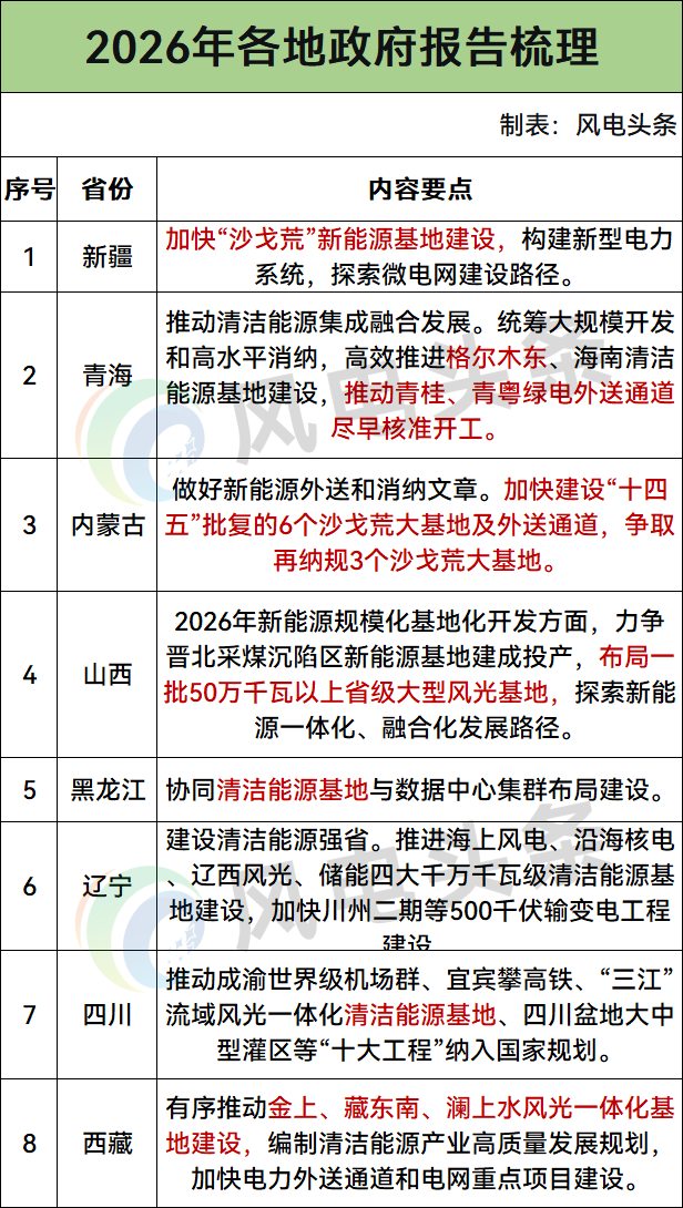 地方层面同样积极响应。在地方各省2026年的政府工作报告中,新疆、青海、内蒙古、山西、黑龙江、辽宁、四川、西藏等8个省份均提及了“沙戈荒”大基地的建设,将其作为本地能源转型和经济发展的核心引擎。
