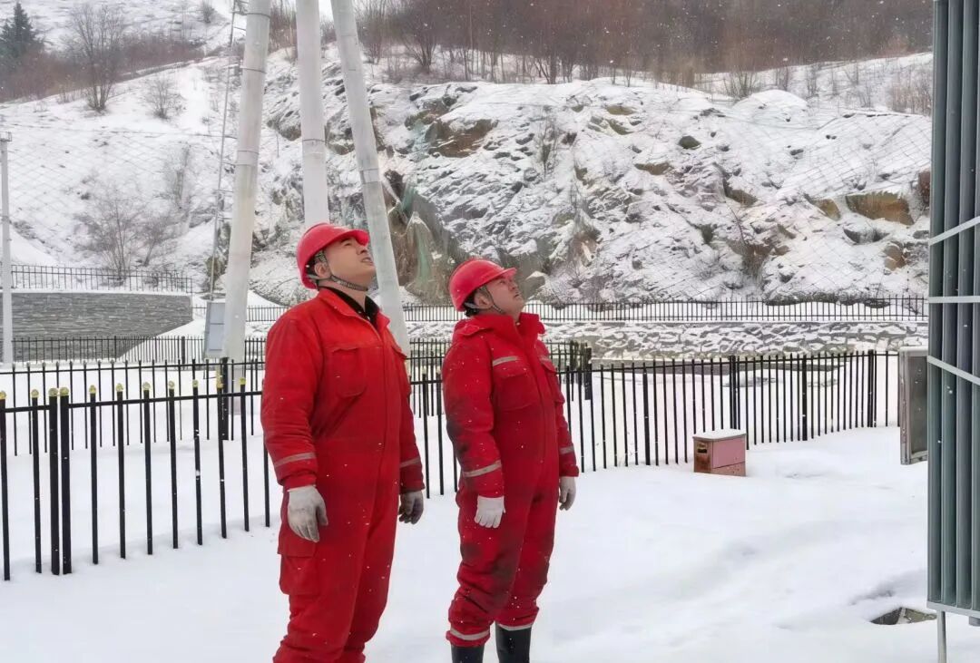 风雪中,他们逐项检查,从主变压器到避雷器,从电压互感器到电流互感器,每一个设备都不放过。短短半个小时,两人已在升压站内走了一个来回。