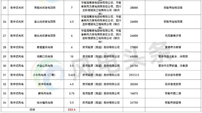 红河州列入云南省2025年第三批新能源项目建设清单的34个项目规模合计222.4万千瓦。其中,集中式风电22个,规模合计156.4万千瓦;集中式光伏12个,规模合计66万千瓦。