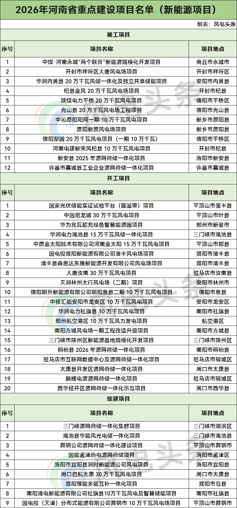 能源圈通过梳理,2026年河南省重点建设项目名单包含41个新能源项目,规模超290万千瓦。