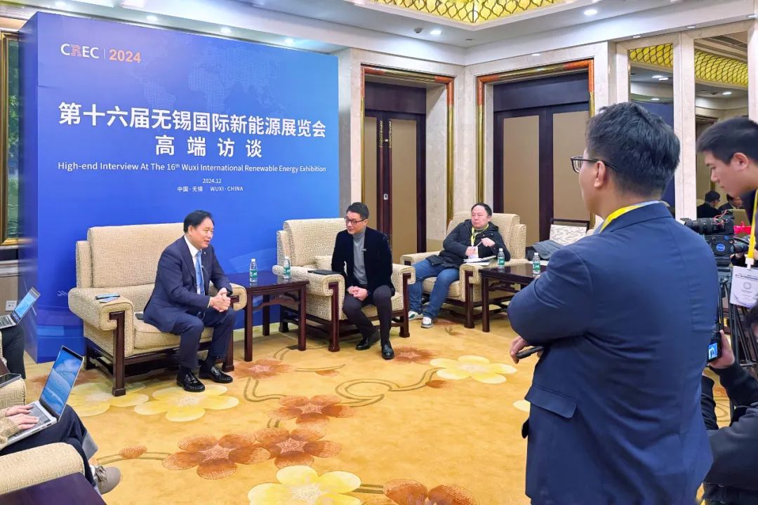 展览会期间,朱共山接受了媒体的采访,就新能源企业如何通过绿色能源打造新质生产力、走差异化竞争路线等话题分享深刻见解,为行业鼓与呼。