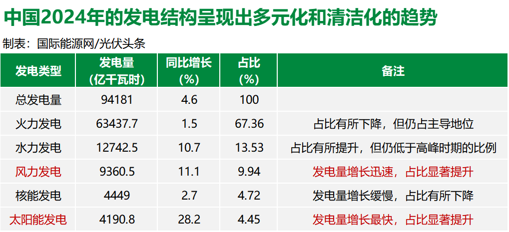 中国2024年的发电结构,已经呈现出了多元化和清洁化的趋势。