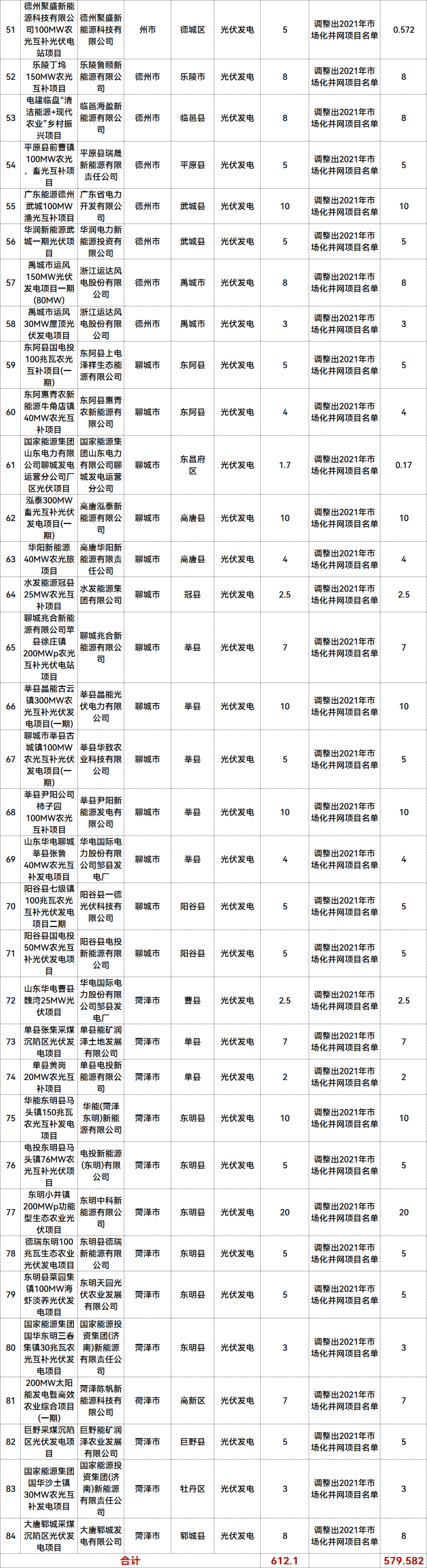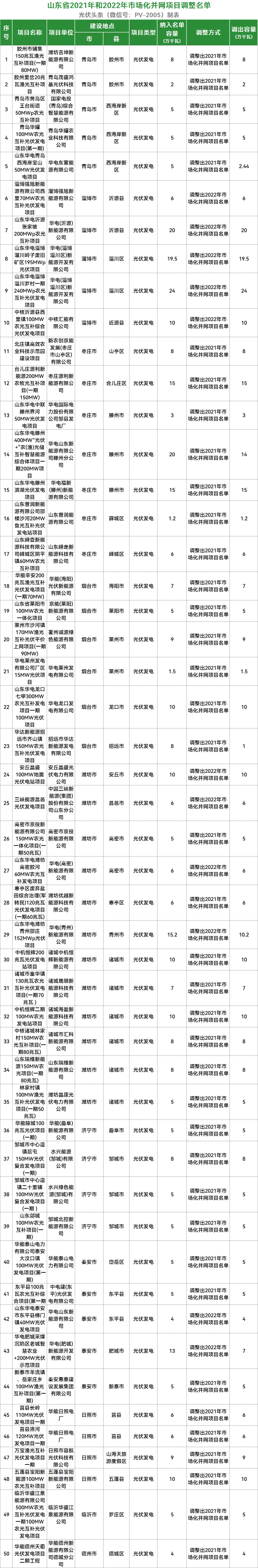 2024年1月12日,山东能源局发布文件《关于调整2021年和2022年市场化并网项目名单的通知》,将未按时并网项目及容量579.582万千瓦调整出2021年和2022年市场化并网项目名单。
