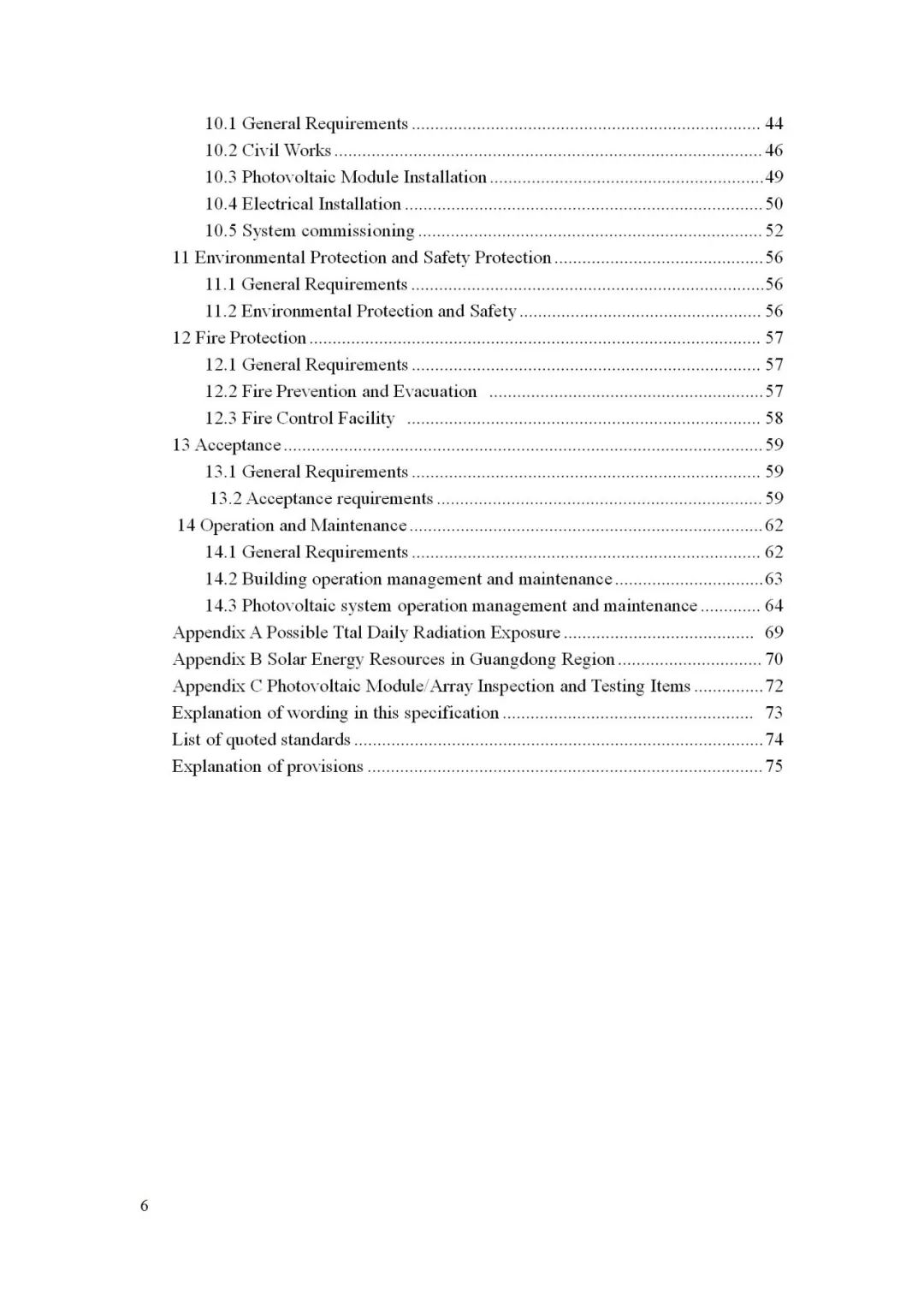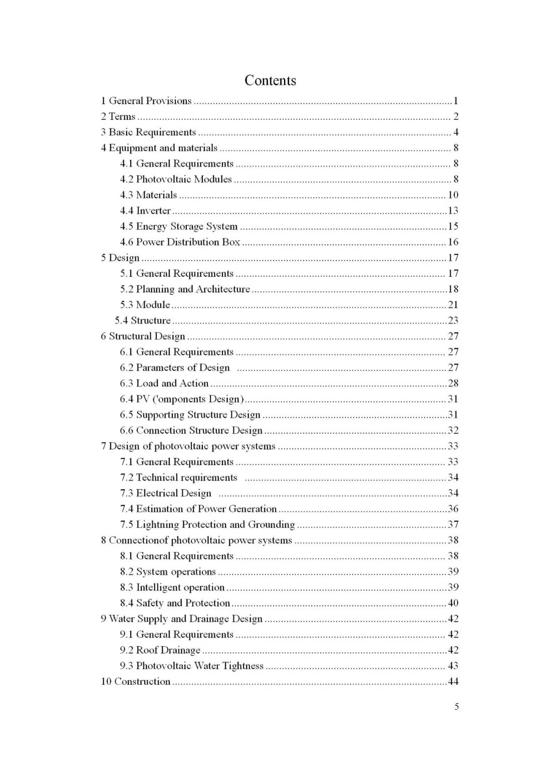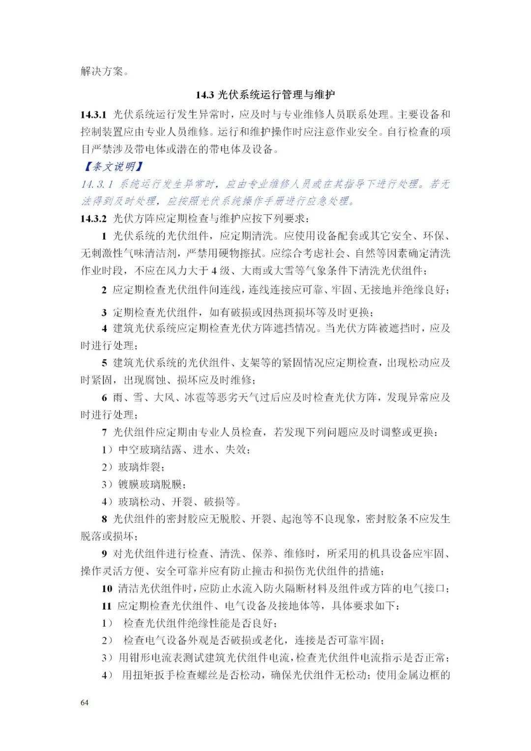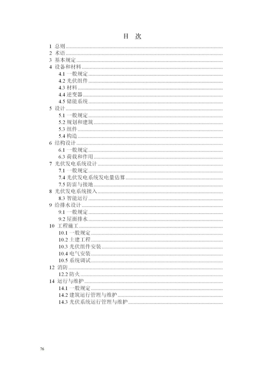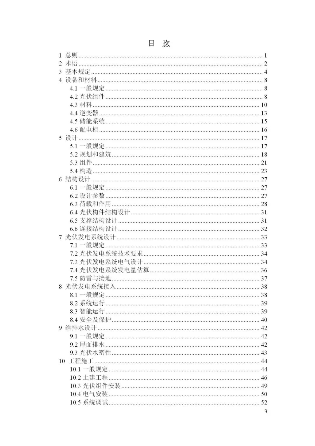 建筑太阳能光伏系统技术标准(征求意见稿)指出,本标准的主要技术内容是:总则、术语、基本规定、设备和材料、设计、结构设计、光伏发电系统设计、光伏发电系统接入、给排水设计、工程施工、环境保护与安全防护、消防、验收、运行与维护。