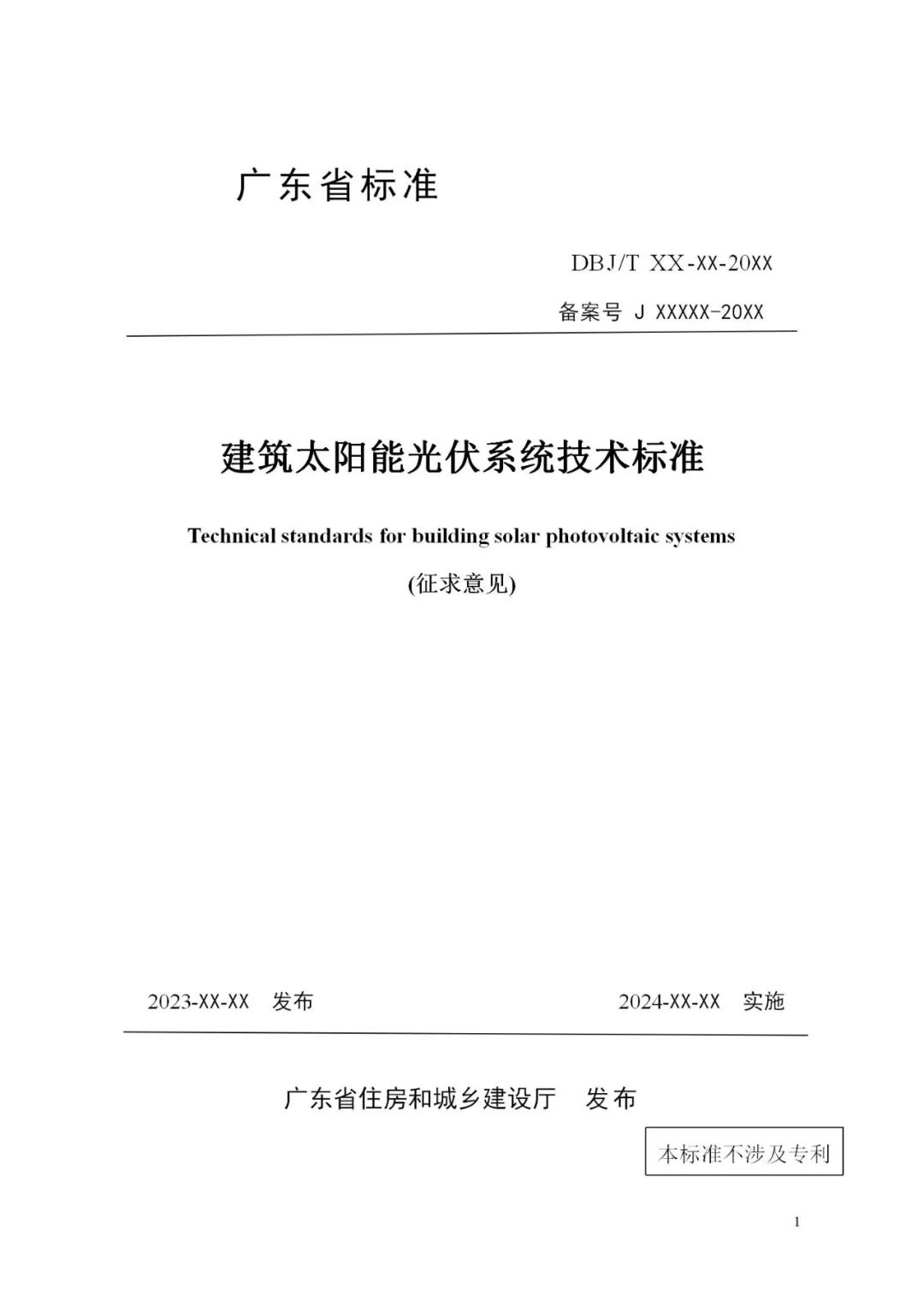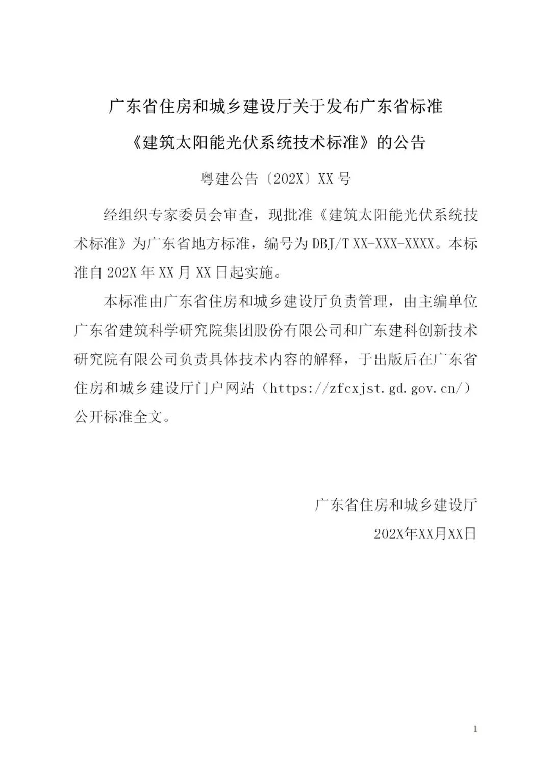 附件:1.广东省住房和城乡建设厅关于征求《建筑太阳能光伏系统技术标准》(征求意见稿)意见的函