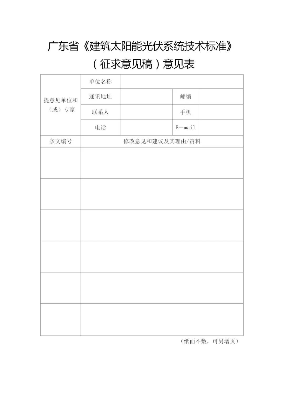 3.《建筑太阳能光伏系统技术标准》(征求意见稿)意见表
