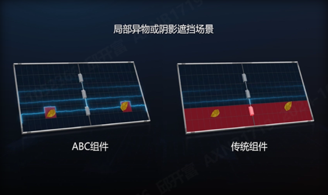 ABC组件还具有优秀的高温抑制能力。根据TÜV测试报告,在相同的热斑测试条件下,ABC组件的表面温度比传统组件低近50℃,大大降低了火灾风险。