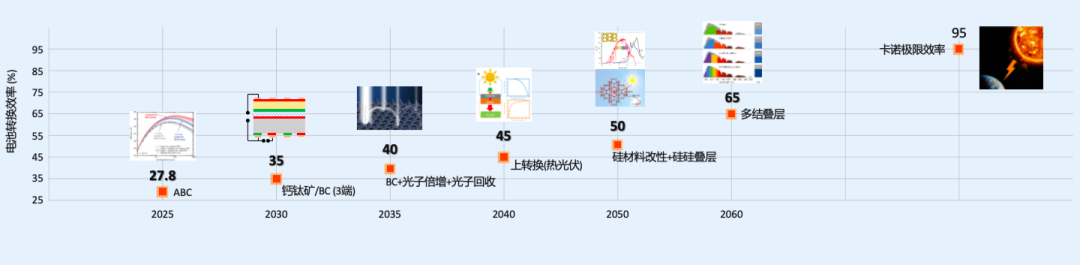 展望下一代电池技术,我们认为是基于BC电池之上的某种结构和功能的叠加或组合;其中光子倍增和钙钛矿/BC叠层是比较重要和易于实现的方向。光子倍增可将单个高能光子转变为多个低能光子,有效避免光电转换过程中高能光子能量的热化损失,从而显著提高电池光谱响应的量子效率;钙钛矿与BC的叠层、特别是钙钛矿和BC的三端叠层具有最高的理论和实际应用场景下的转换效率。