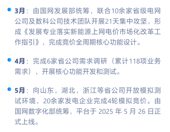从上线经过可见,增量新能源项目机制电价竞价平台在山东、湖北、浙江等地完成测试,20余家发电企业完成模拟竞价。