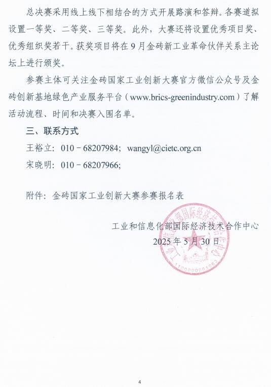 工信部发布关于举办2025金砖国家工业创新大赛“能源电子产业”赛道的通知。