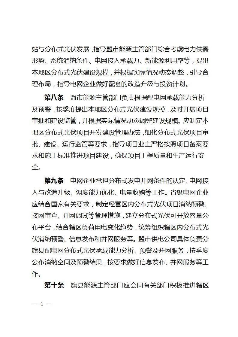 为落实好国家分布式光伏开发管理政策及自治区能源领域简政放权有关要求,进一步规范全区分布式光伏开发和管理,自治区能源局结合全区分布式光伏发展实际,制定了《内蒙古自治区分布式光伏项目开发建设管理实施细则》,现印发你们,请认真执行。