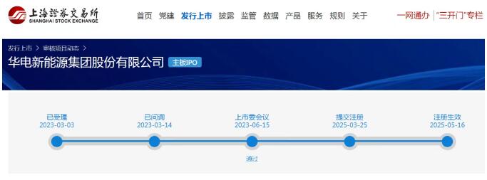 2023年3月3日,华电新能IPO获上交所受理,2023年6月5日,华电新能IPO获审核通过。2025年5月16日,华电新能IPO注册正式生效。此次,华电新能启动发行路演,不仅意味着今年A股市场最大IPO启动发行,也表示,A股市场上即将诞生新的央企新能源上市企业。