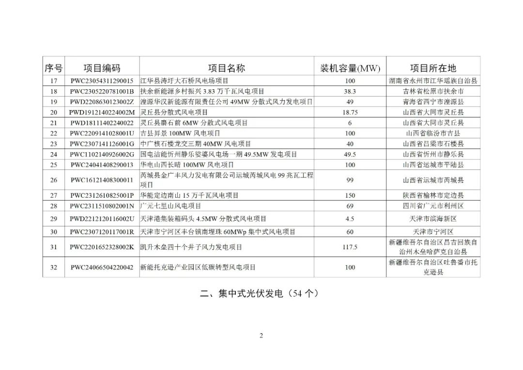 2025年5月,全国新增建档立卡新能源发电(不含户用光伏)项目共4917个,其中风电项目32个,光伏发电项目4875个(集中式光伏发电项目54个,工商业分布式光伏发电项目4821个),生物质发电项目10个。风电、集中式光伏发电、生物质发电项目清单见附件,工商业分布式光伏发电项目清单详见国家可再生能源发电项目信息管理平台网站(网址https://jdlk.renewable.org.cn/card-info-sheet/)。