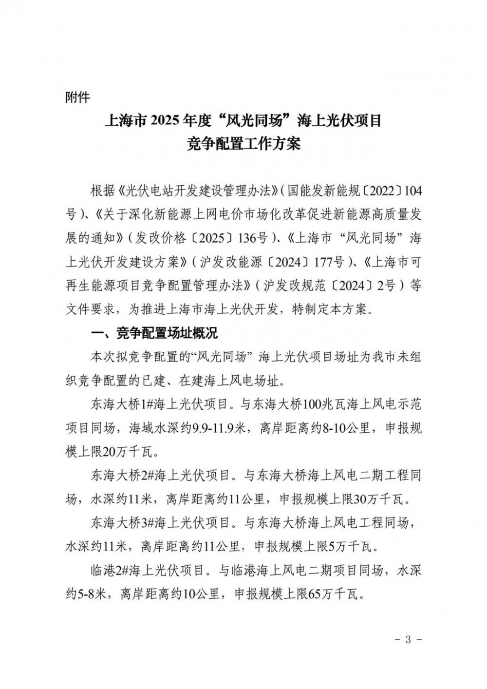 光伏头条获悉,7月7日,上海市发改委发布关于公布《上海市2025年度“风光同场”海上光伏项目竞争配置工作方案》的通知。