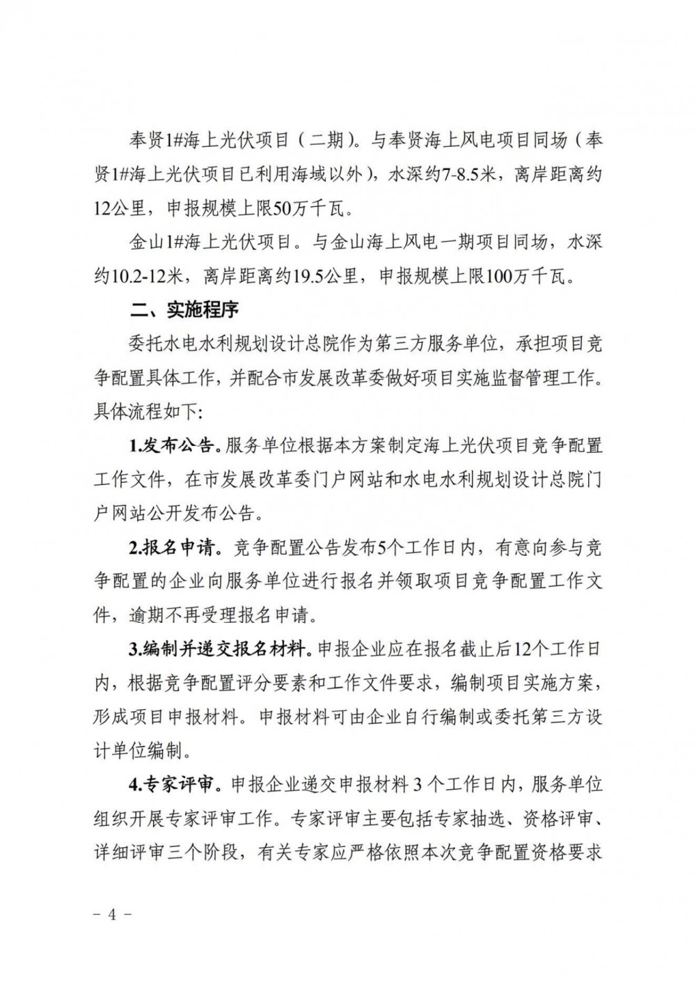 奉贤1#海上光伏项目(二期)。与奉贤海上风电项目同场(奉贤1#海上光伏项目已利用海域以外),水深约7-8.5米,离岸距离约12公里,申报规模上限50万千瓦。