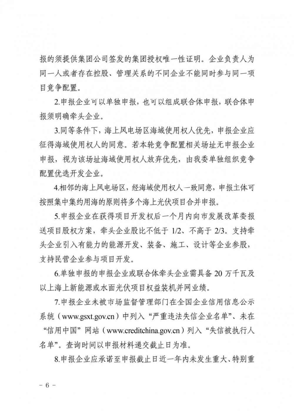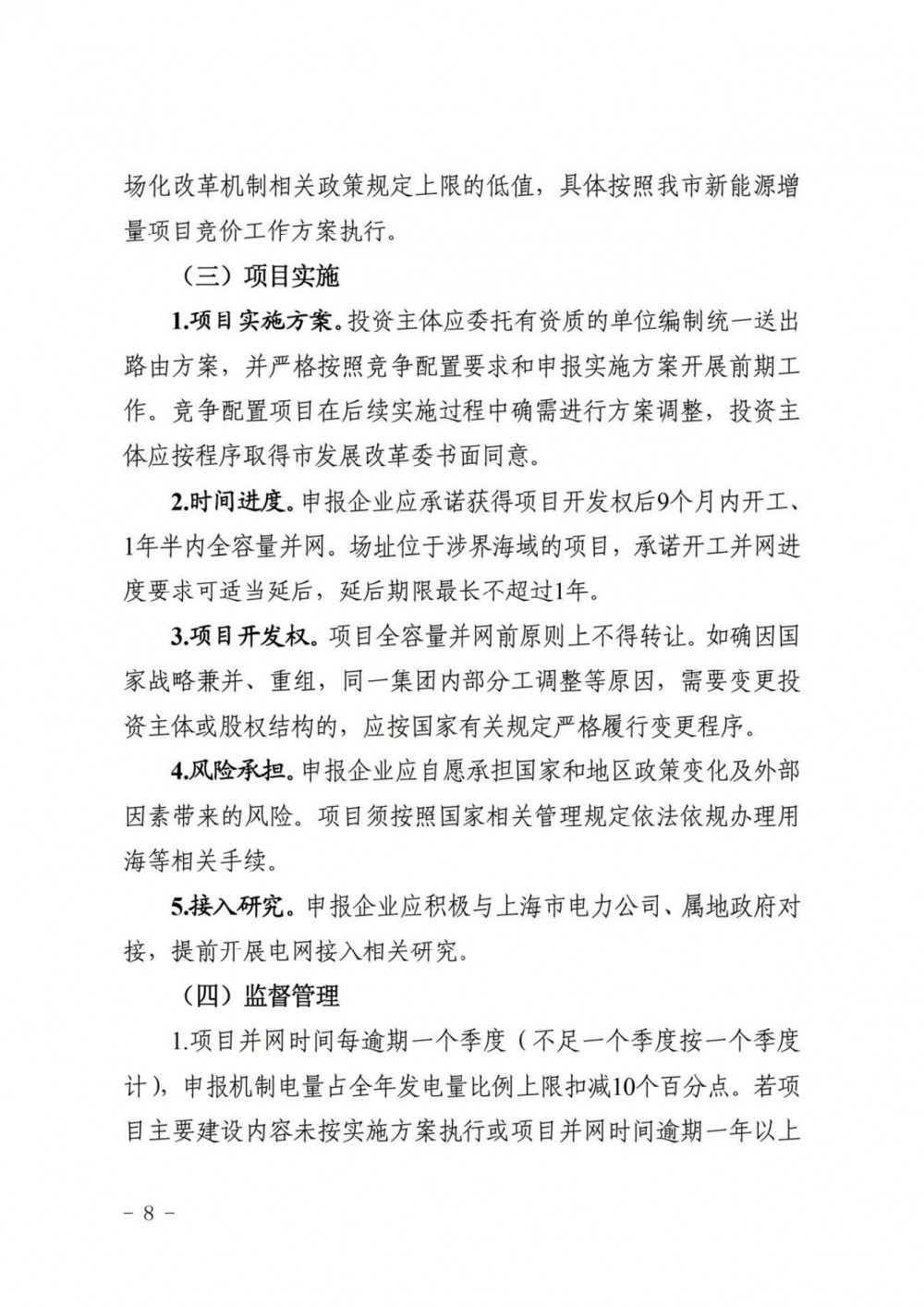 申报企业应承诺获得项目开发权后9个月内开工、1年半内全容量并网。场址位于涉界海域的项目,承诺开工并网进度要求可适当延后,延后期限最长不超过1年。