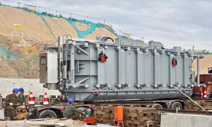 此次安装的主变压器是升压站的核心设备,承担着电能升压与输送的关键功能;其本体重量达139吨,规格型号为SZ20-20000/220,属于项目建设所需的重要大型设备。为保证顺利安装,项目部提前规划、周密部署,克服山地运输和大型设备安装面临的种种困难,在保证安全和质量的前提下,实现了主变压器一次就位成功。