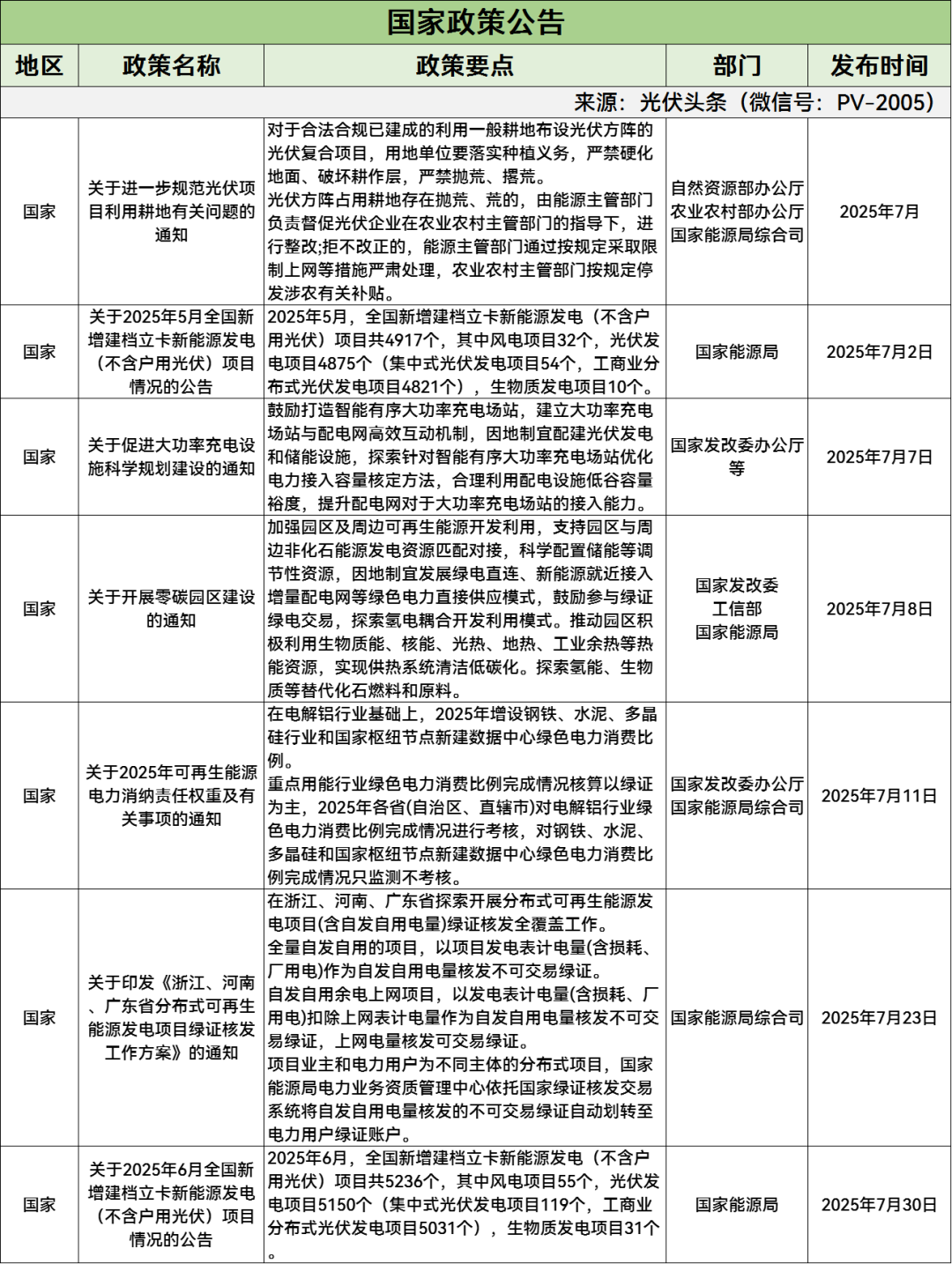 7月国家政策公告一览
