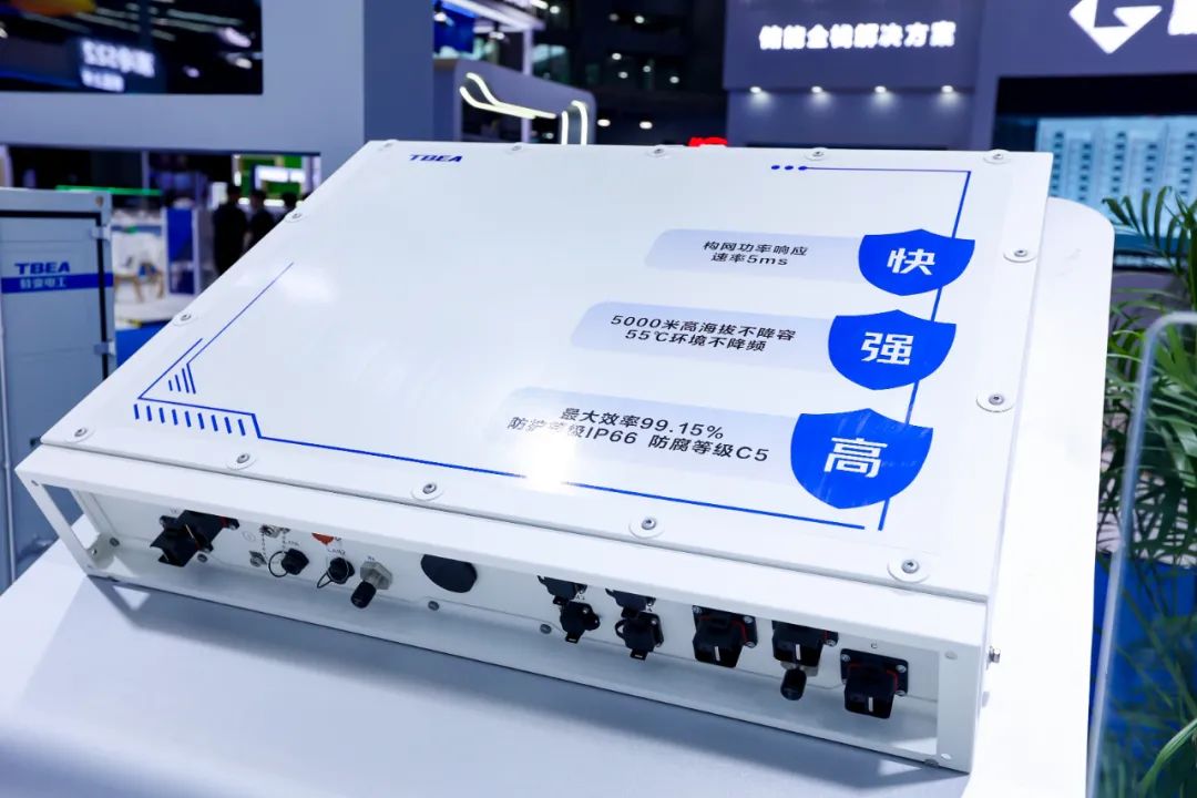 特变电工新能源储能交直流一体方案(BPS)以独特架构和设计,能实现调试时间减少50%、安装时间减少80%的极速部署,还具备安全保障与宽温域适配能力。此外,工商业储能一体柜也一同亮相,它是一款极致安全、稳定高效和电网友好的工商储一体柜明星产品。系统支持三相三线/三相四线交流接入,支持快速并离网切换、离网模式运行及黑启动,灵活适配于工商业全场景。