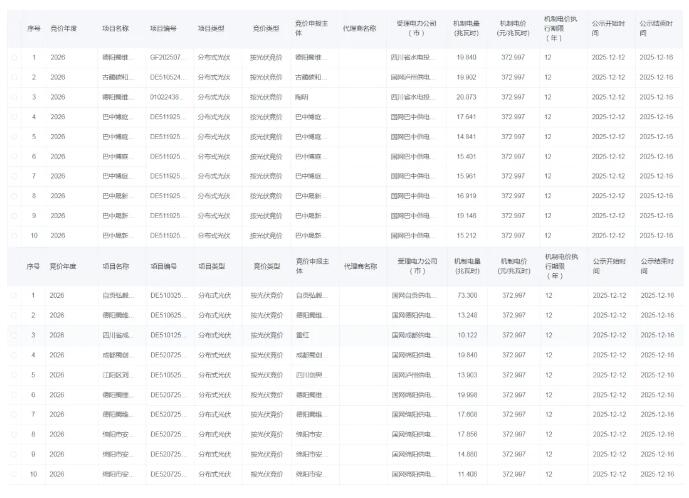 能源圈获悉,12月12日,国网新能源云公示四川省机制电价竞价结果。