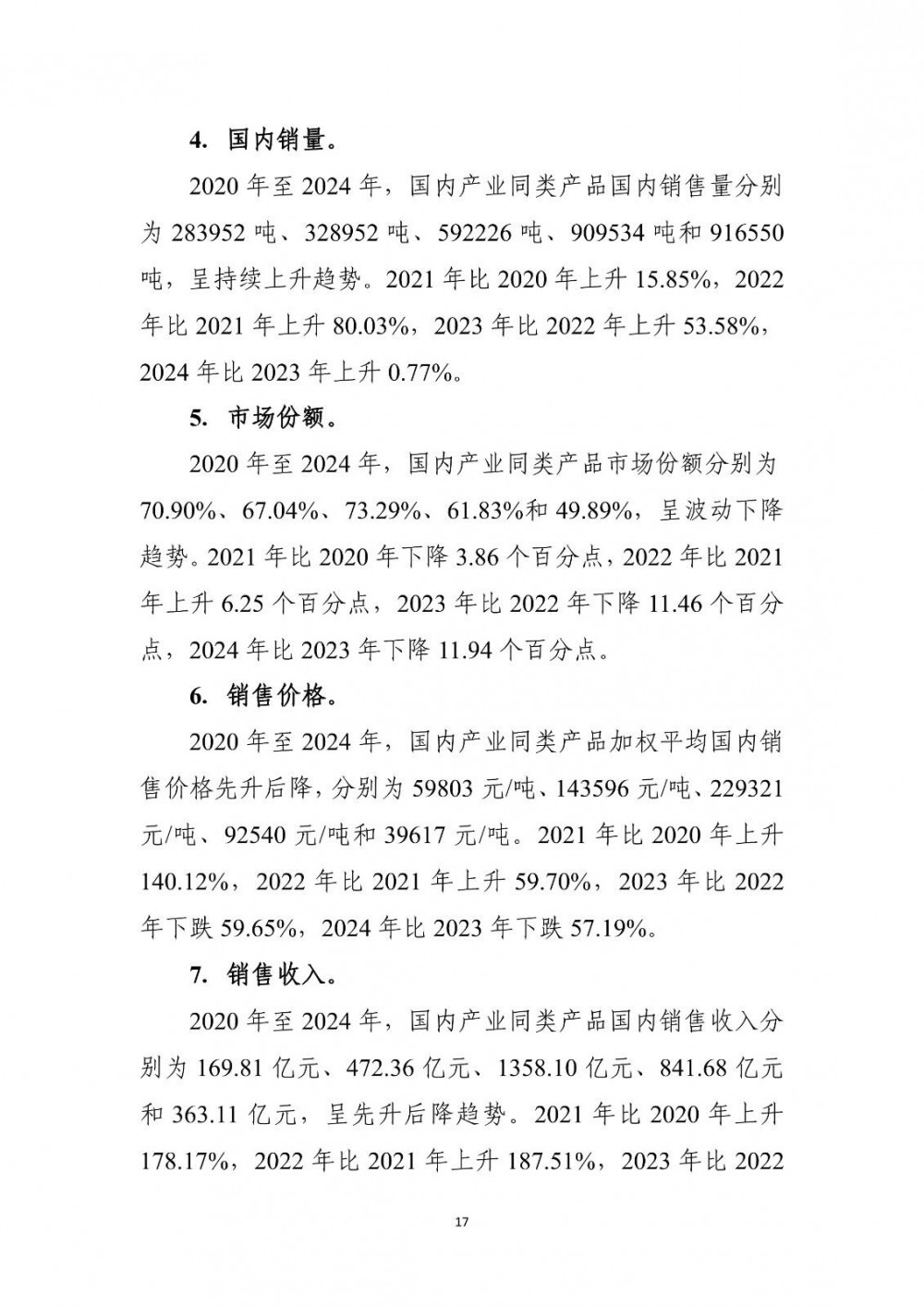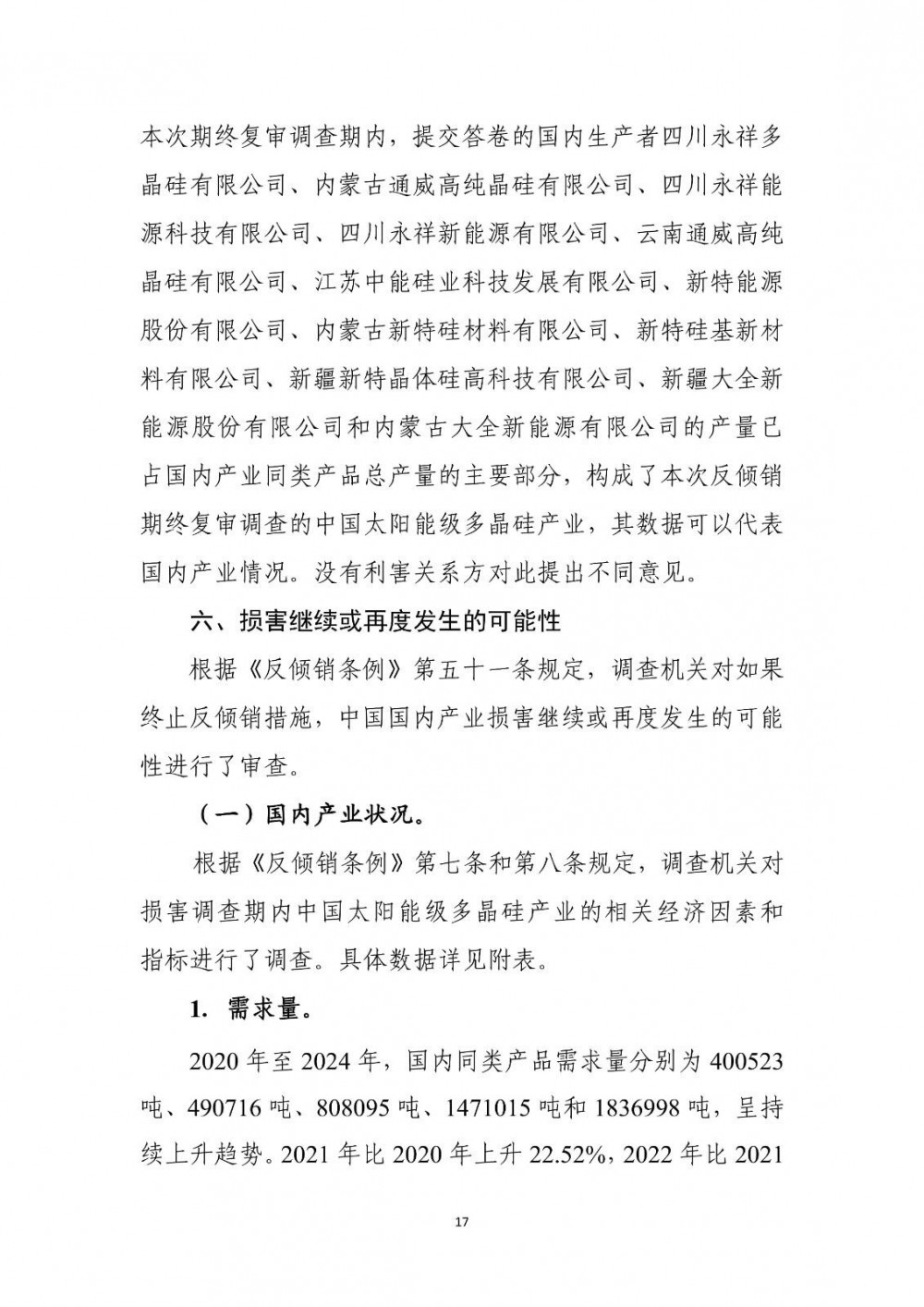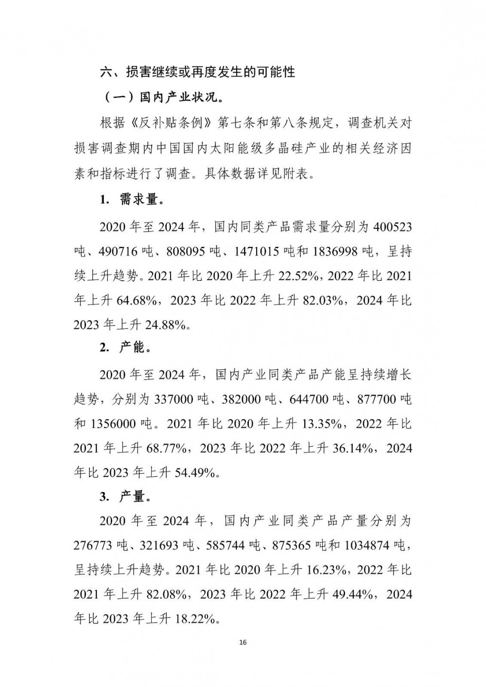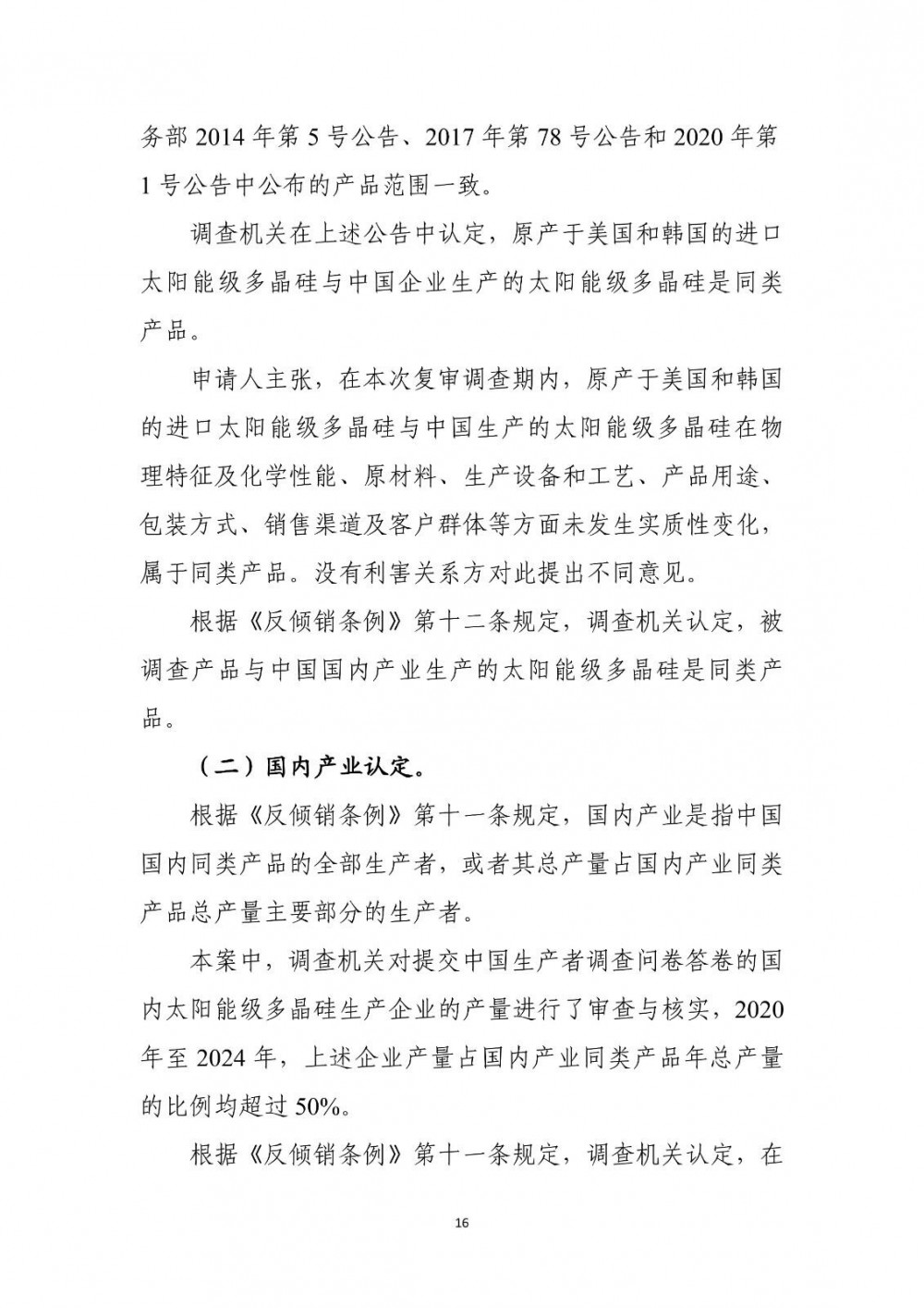 2025年1月10日,应中国太阳能级多晶硅产业申请,商务部发布2025年第6号公告,决定自2025年1月14日起对原产于美国的进口太阳能级多晶硅所适用的反补贴措施进行期终复审调查。
