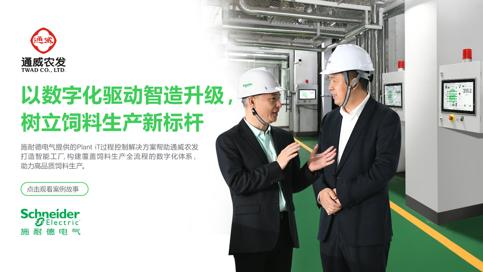为了帮助通威农发构建覆盖饲料生产全流程的数字化体系,进一步降本增效,施耐德电气以Plant iT过程控制解决方案助力其打造饲料行业的智能工厂,实现从配方研发、生产制造到经营管控的一体化管理,引领饲料行业从质造迈向智造新生态。