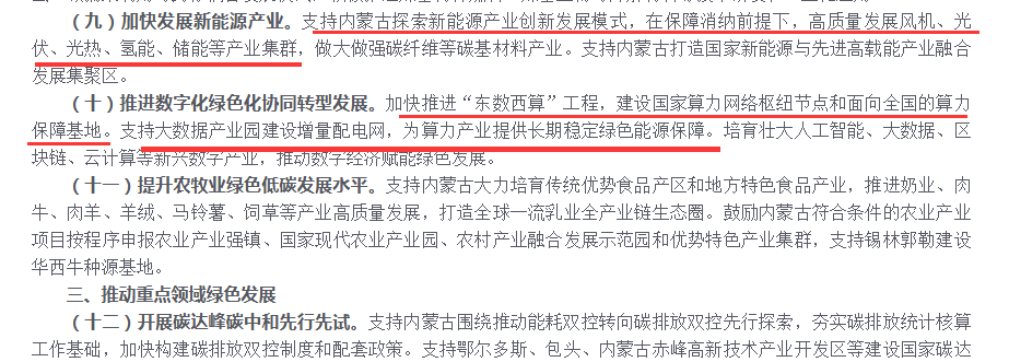 2024年4月,国家发展改革委等部门发布《关于支持内蒙古绿色低碳高质量发展若干政策措施的通知》。